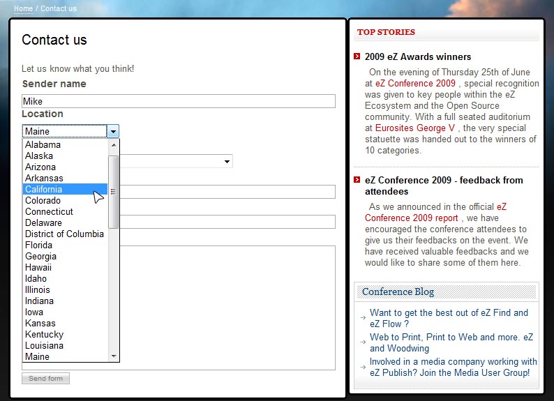 Granite State allows users to add a ghstate datatype to their content classes. The attribute will then the allow the user to select a state from the USA. This is helpful in validating US addresses, for example. It can act as an information collector.